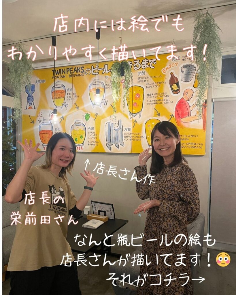 店内にはビール造りの工程を描いた絵が飾られています。なんとこの作品を手がけたのは店長の栄前田さん。