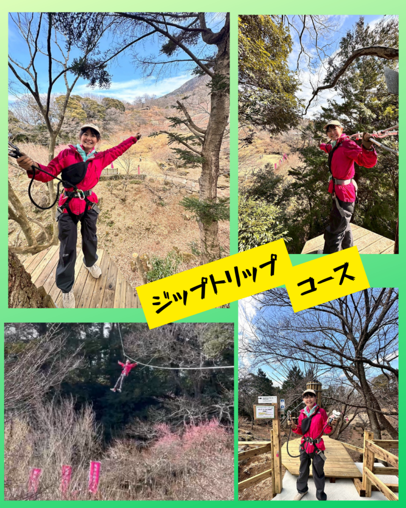 毎年2月上旬~3月中旬頃までは梅林を見下ろしながら、往復180m(80m+100m)のジップスライドが楽しめます!