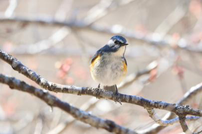 白いお腹が特徴で、冬の梅林では比較的出会いやすい存在です。